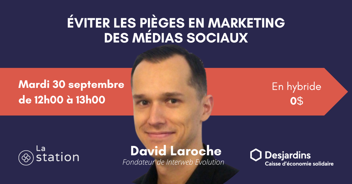 Mardi 30 septembre 2025, nous avons reçu David Laroche, fondateur de Interweb Evolution pour une conférence sur le “Éviter les pièges en Marketing des médias sociaux”.