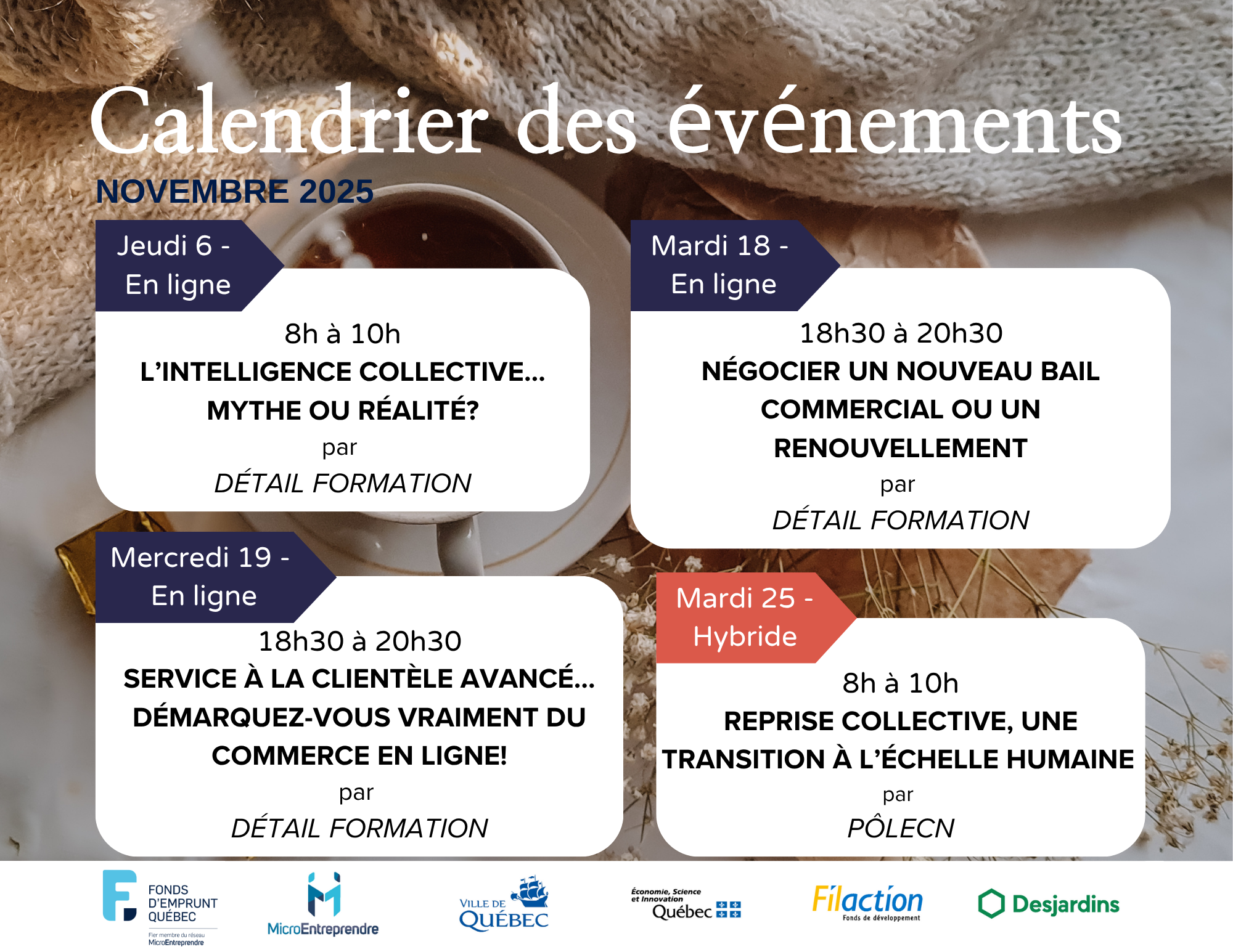 On est ravis de te dévoiler notre programmation d’événement et de formations pour t’aider à faire avancer tes projets avant la fin de l’année !