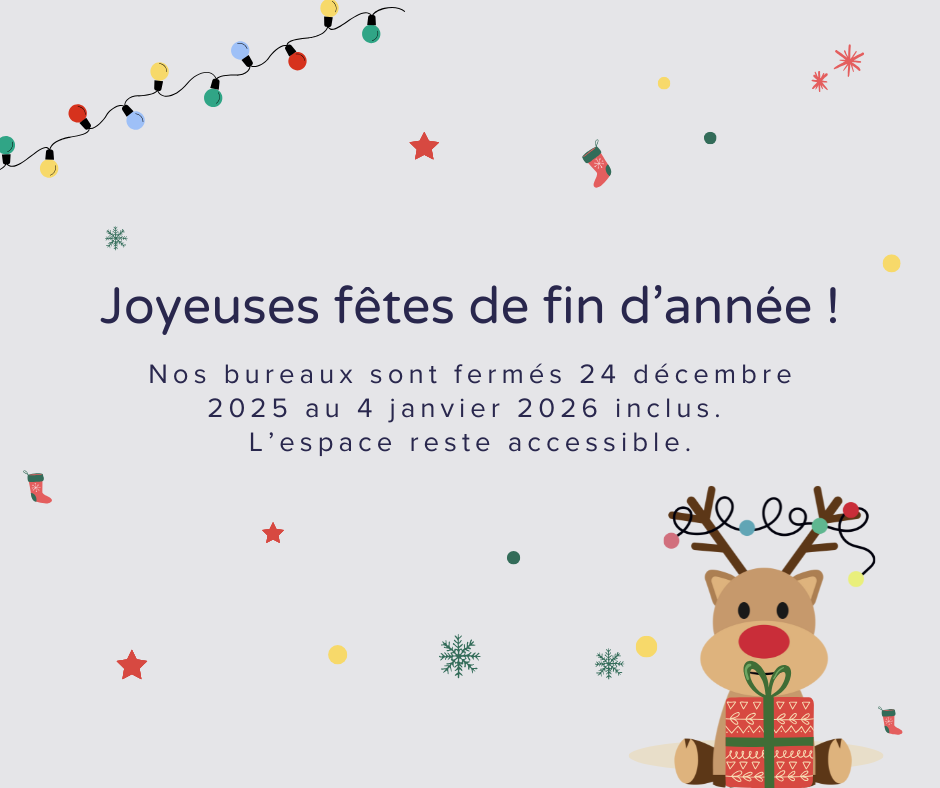 À l’occasion des fêtes, nos activités marquent une petite pause et seront fermées du 24 décembre 2025 au 4 janvier 2026 inclus.