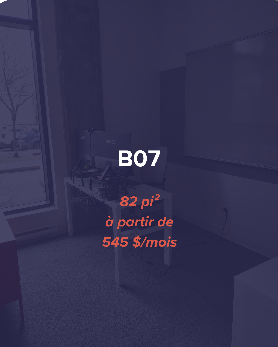 👉 B07 : 82pi², climatisé, 545$/mois pour 1 personnes ou 630$/mois pour 2 personnes. Disponible officiellement en juin 2026, avec possibilité de négocier une prise de possession avant cette date ;